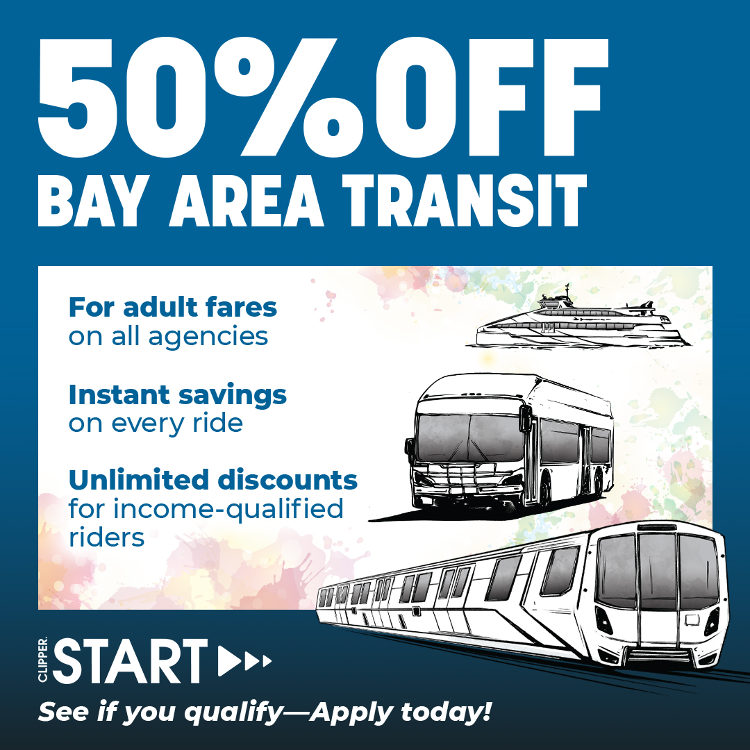 Clipper START is a pilot program to provide single-ride discounts to eligible low-income riders on AC Transit, BART, Caltrain, Golden Gate Ferry, San